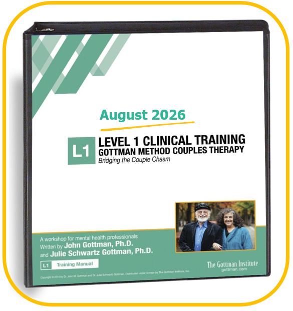 Registration includes lifetime access to beneficial Gottman Method Couples Therapy assessment tools and video resources, a Level 1 Clinical Training e-Manual with research-based interventions, and — upon successful completion of the training exam — Participants will receive a Gottman Method Couples Therapy Level 1 Certificate. Please let our office know if you have previously purchased Gottman Level 1 training materials.